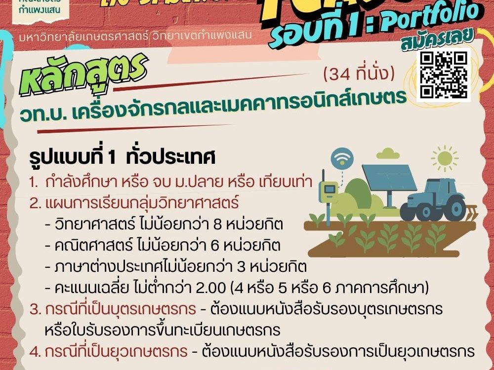 ลงทะเบียนใช้งานระบบ TCAS : https://admission.kps.ku.ac.th/
