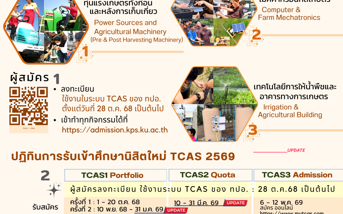 ลงทะเบียนใช้งานระบบ TCAS : https://admission.kps.ku.ac.th/