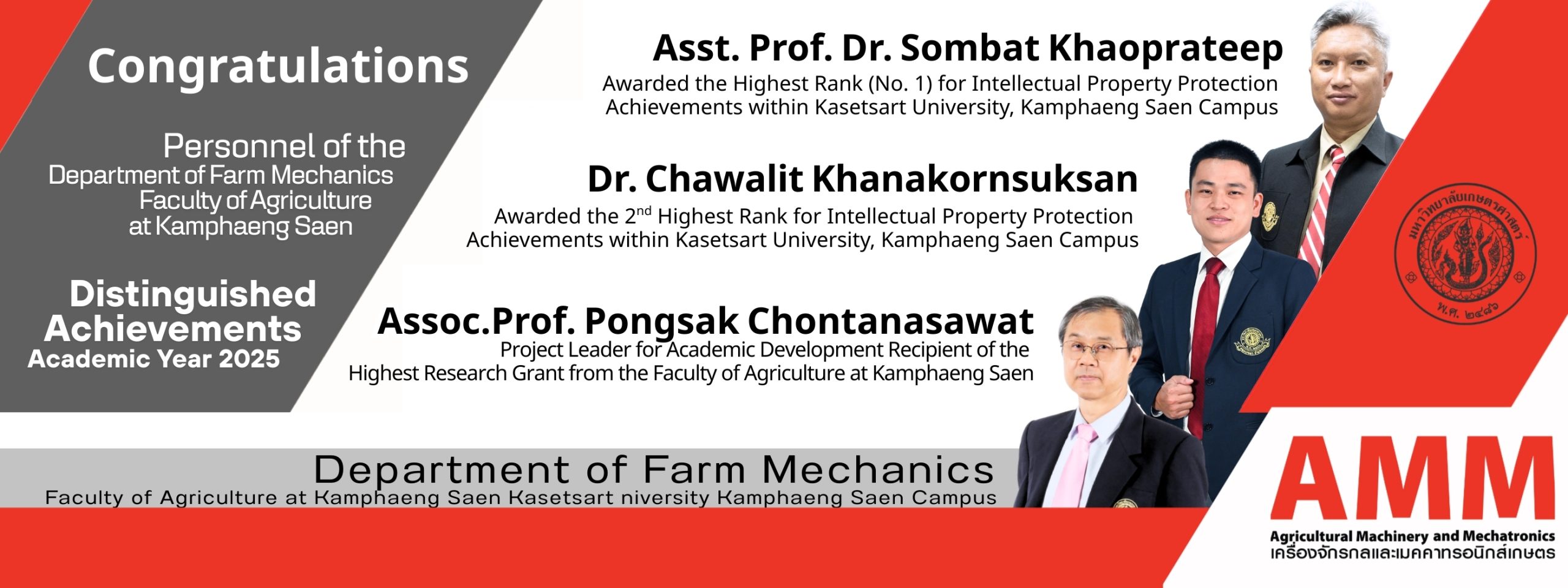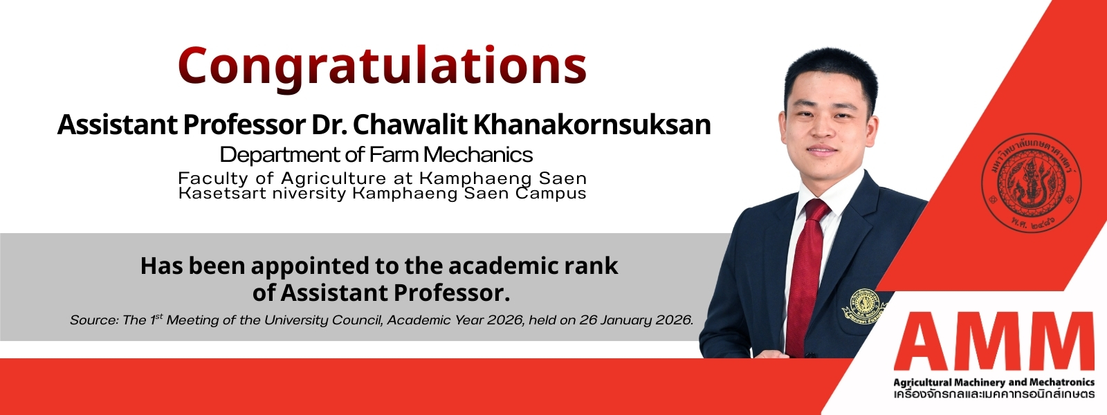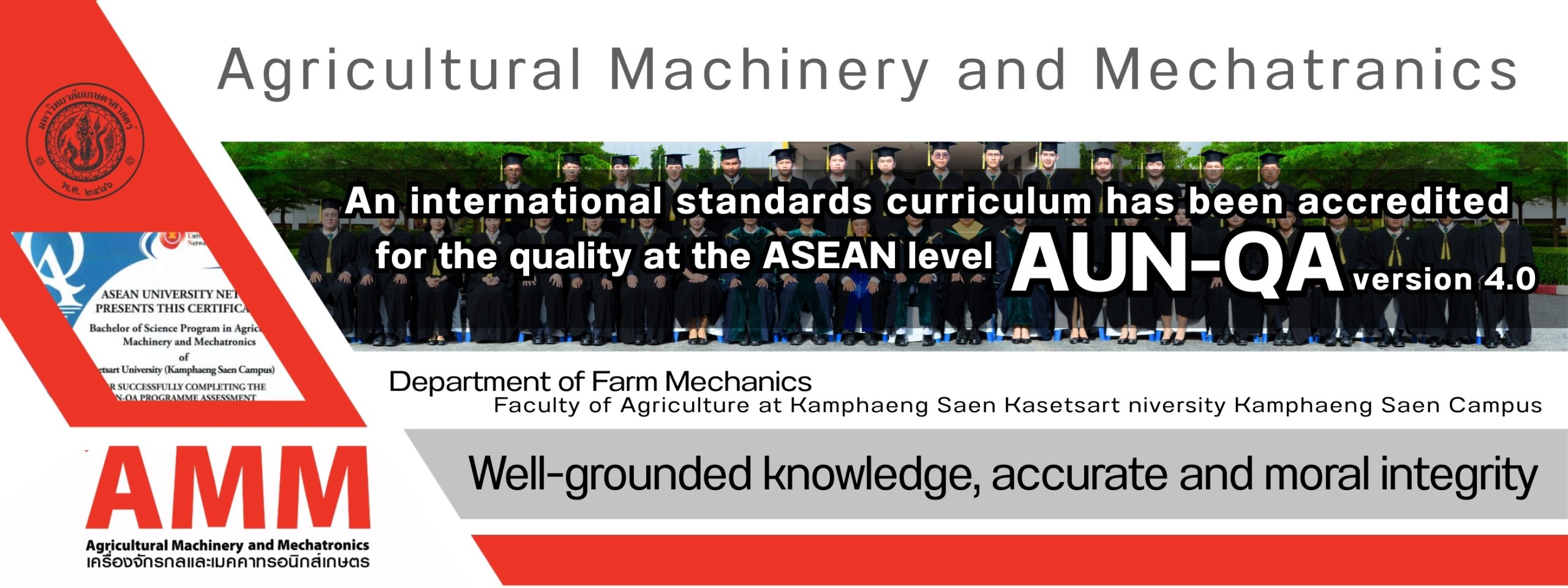 The Department of Farm Mechanics, Faculty of Agriculture at Kamphaeng Saen has been developed from the foundation of the Faculty of Agriculture since 1943 to the present Bachelor of Science Program in Agricultural Machinery and Mechatronics. The curriculum is improved every 5 years to keep up with the times and meet the needs of the industrial sector.