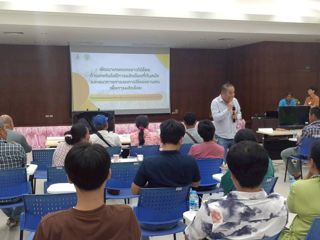 ภาควิชาเกษตรกลวิธาน ดำเนินโครงการฝึกอบรมให้แก่เกษตรกรชาวไร่อ้อยและเจ้าหน้าที่โรงงานน้ำตาล ณ โรงงานน้ำตาลทิพย์กำแพงเพชร จังหวัดกำแพงเพชร ใน 3 หัวข้อเรื่อง คือ 1. อบรมเกษตรกรชาวไร่อ้อยเพื่อสร้างความเข้าใจด้านการลดการสูญเสียในระดับไร่นา ตลอดทั้งกระบวนการผลิตอ้อยและห่วงโซ่คุณค่าของการผลิตอ้อย ก่อนการส่งมอบเข้าสู่โรงงานน้ำตาล และ การมุ่งสู่ ZERO WASTE INDUSTRY เพื่อขับเคลื่อนระบบเศรษฐกิจหมุนเวียนในระดับพื้นที่ สร้างรายได้เพิ่มให้แก่เกษตรกรชาวไร่อ้อยอย่างยั่งยืน 2.พัฒนาเกษตรกรชาวไร่อ้อยด้านเทคโนโลยีการผลิตอ้อยที่ทันสมัยและแนวทางการลดการใช้แรงงานคน เพื่อการผลิตอ้อย และ 3.การพัฒนาเกษตรกรชาวไร่อ้อย เป็นทายาทเกษตรกรชาวไร่อ้อย เพื่อให้มีความยั่งยืนในการผลิตอ้อยทดแทนคนรุ่นเก่าที่เป็นผู้สูงอายุใน 2 เขตพื้นที่ระเบียงเศรษฐกิจอ้อย โดยมีเกษตรกรชาวไร่อ้อยและเจ้าหน้าที่โรงงานน้ำตาล ซึ่งในการฝึกอบรมดังกล่าว ภาควิชาฯ ได้มีการประชาสัมพันธ์หลักสูตร วท.บ.เครื่องจักรกลและเมคคาทรอนิกส์เกษตร รวมทั้งหลักเกณฑ์และจำนวนนักเรียนที่รับเข้าศึกษา ในหลักสูตร ของภาควิชาด้วย